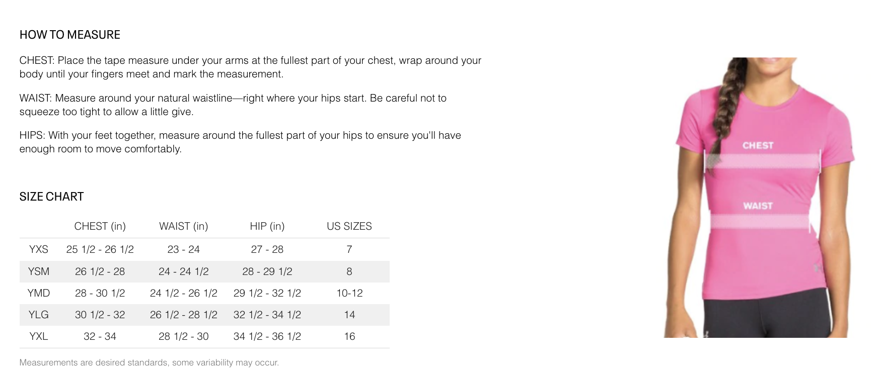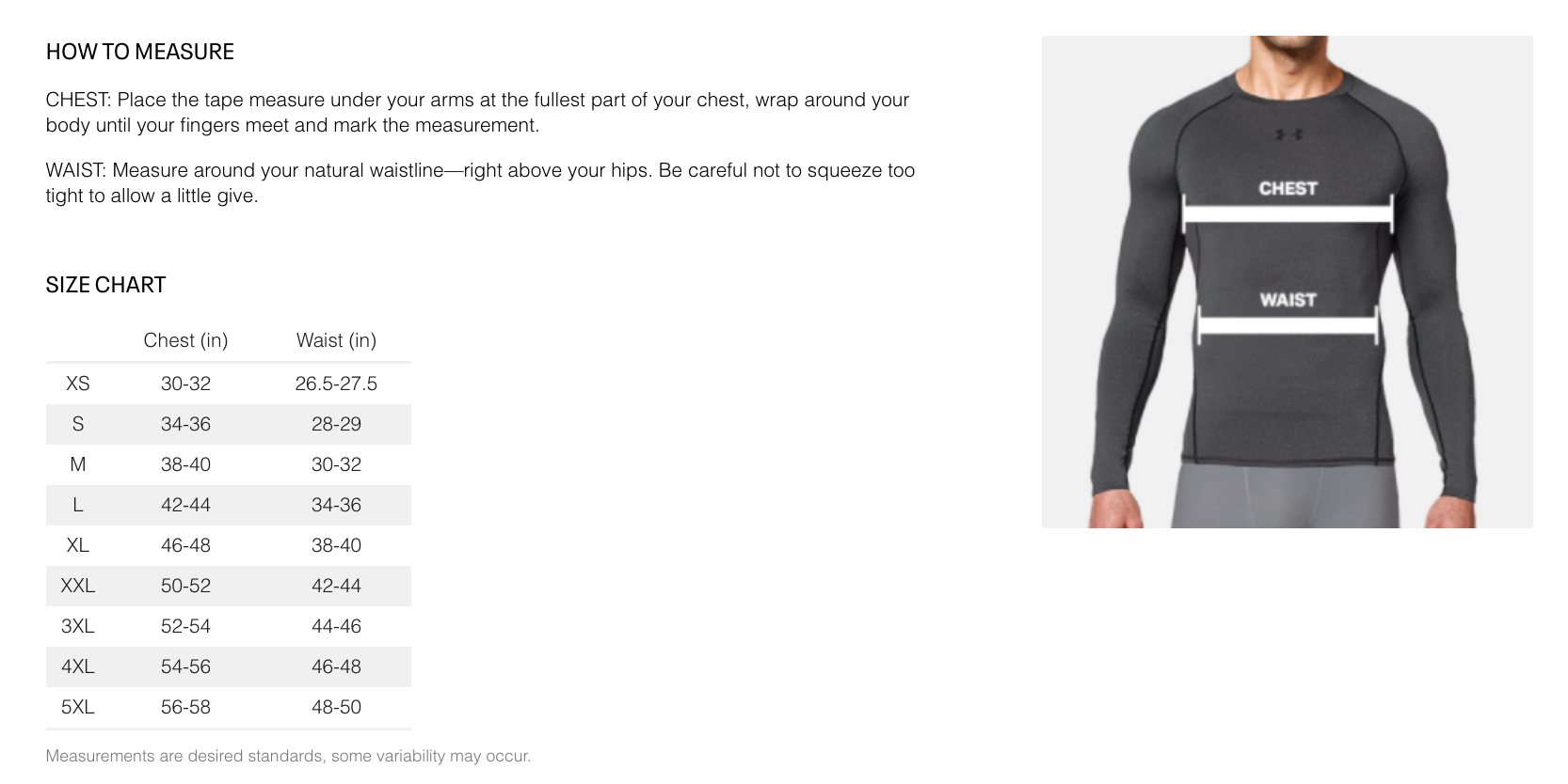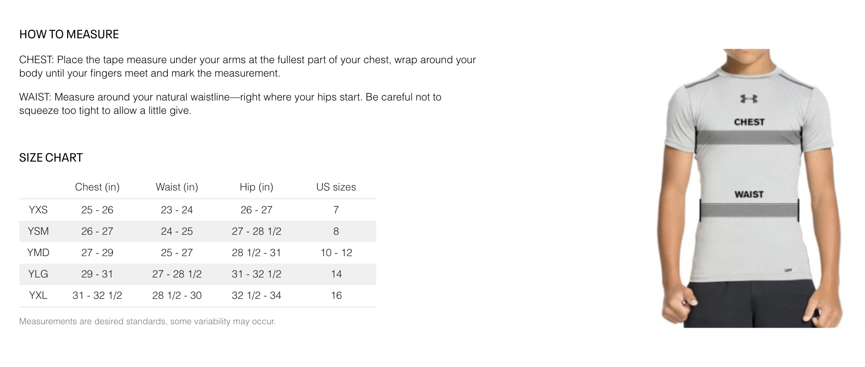 Below are sizing guides used by Under Armour. You can help determine your sizing by using the information below.